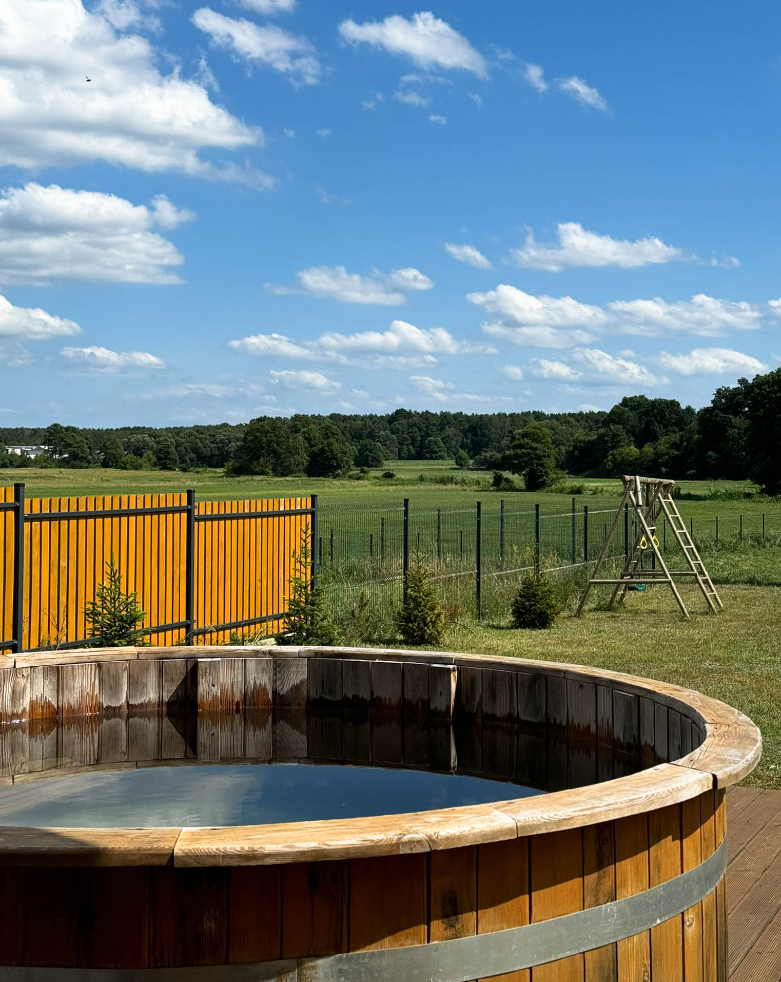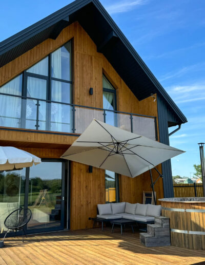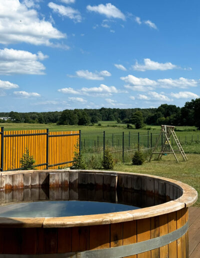 Domek oferuje prywatną drewnianą balię, idealną na relaks i odprężenie. Kąpiel w rozgrzanej balii to doskonałe mini-SPA pod gołym niebem z widokiem na las, idealne na randki we dwoje lub wieczorne spotkania do 4-5 osób, niezależnie od pory roku. Kąpiele na świeżym powietrzu wspierają zdrowie i dobre samopoczucie, relaksują mięśnie oraz działają korzystnie na odporność.